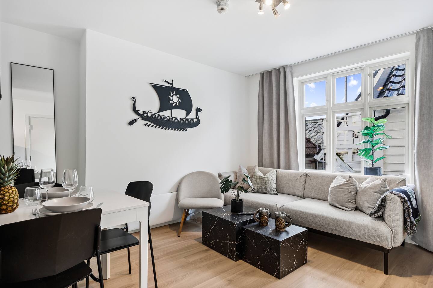 Welcome to this new apartment with an amazing view over Bryggen and Bergen, located on one of Bergen's most enchanting streets! Cobblestone paths with a plethora of amenities are right at your doorstep. This gem of an apartment is nestled just behind Bryggen, making it the ultimate hub for you to explore Bergen's treasures.
