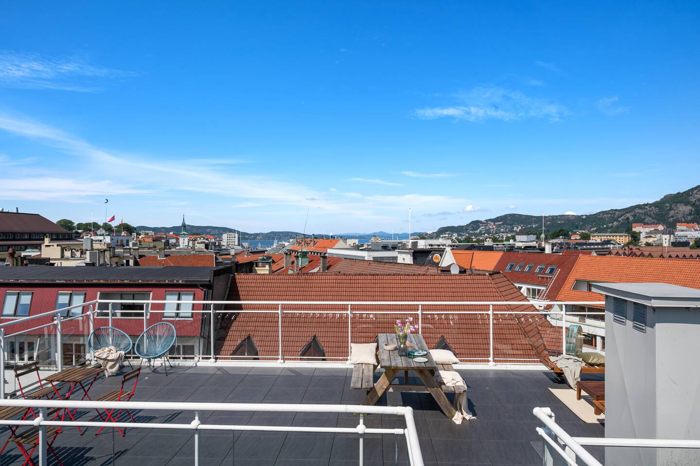 ⌠Highlights: Fully equipped kitchen: Everything you need to prepare delicious meals, including a Nespresso machine with a selection of coffee capsules. Bedroom: Comfortable double bed with plenty of storage space. Modern entertainment: 55â Smart TV with Netflix already logged in â perfect for cozy movie nights or relaxing after a day of exploring. Bathroom: Practical bathroom with shower, washing machine, hairdryer, and all essentials for a smooth and comfortable stay. ⨠Private Rooftop Terrace: The apartmentâs true gem! Enjoy the city view with a cup of coffee or a glass of wine under the open sky. đ żď¸ Parking: Paid public parking is available in the area (not included). The nearest parking garage is just a few minutesâ walk from the apartment. đĄ Layout: The apartment features one bedroom, a bathroom, and an open-plan kitchen and living room â bright and airy with access to the shared rooftop terrace. Everything you need is conveniently laid out for a comfortable and enjoyable stay. đ Distances: Located right in the city center â within walking distance to Fløyen, Stoltzekleiven, and Bergenâs best restaurants, bars, and shops. đ Important to Note: Smoking and pets are not allowed â to ensure a clean and allergy-friendly environment.
