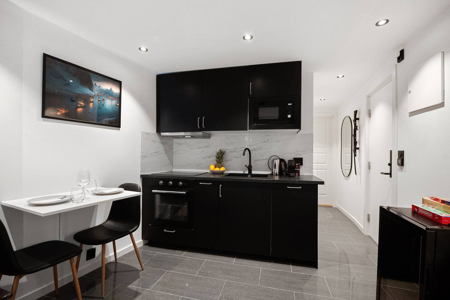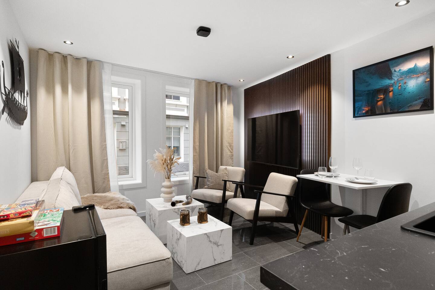 ⌠Highlights: Fully equipped kitchen: Everything you need to prepare delicious meals, including a Nespresso machine with a selection of coffee capsules and complimentary tea to welcome you. Bedroom: Comfortable double bed (140 cm) and a calm atmosphere for a restful nightâs sleep. Sofa bed: The living room features a cozy double sofa bed â the apartment sleeps up to 4 guests. Modern entertainment: Large 65â Smart TV with Netflix and HBO Nordic pre-logged in â perfect for movie nights or binge-watching your favorite shows. Bathroom: Stylish bathroom with shower, hairdryer, and all the essentials for a smooth and pleasant stay. đ żď¸ Parking: Paid public parking is available nearby (not included). The closest parking garage is only a few minutesâ walk away. đĄ Layout: The apartment has an open-plan living room and kitchen by the entrance. To the right, a hallway leads to the bathroom and the bedroom. A smart layout that makes excellent use of space. đ Distances: Located just behind Bryggen â in the very heart of Bergen! Walking distance to Fløyen, the Fish Market, mountain trails, shops, and cafĂŠs. đ Important to Note: Smoking and pets are not allowed â to ensure a clean and allergy-friendly stay.